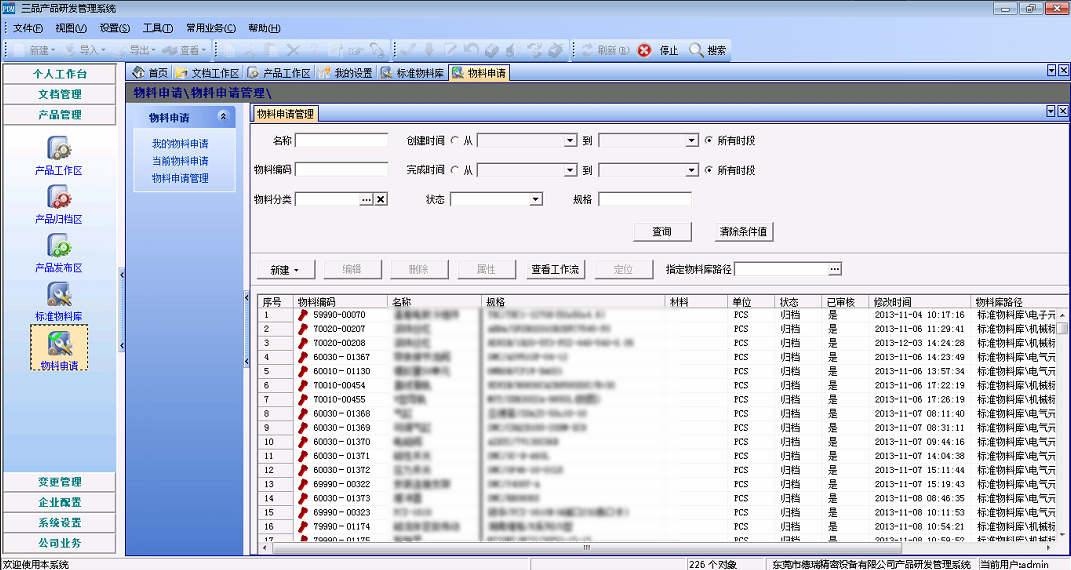 進(jìn)一步,在三品PDM導(dǎo)入歷史數(shù)據(jù),建立了一個(gè)企業(yè)設(shè)計(jì)、工程、采購(gòu)等部門都可以廣泛訪問的標(biāo)準(zhǔn)物料庫(kù)和零部件庫(kù)。設(shè)計(jì)人員從物料庫(kù)中可以非常方便地查詢和調(diào)用各種合規(guī)的標(biāo)準(zhǔn)物料,物料的狀態(tài)直接識(shí)別出這些物料是否能被重用。