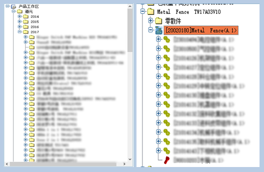 管理好幾十種企業(yè)的通用產(chǎn)品系列,形成基于通用產(chǎn)品系列的快速變型設計。設計人員可以即時接觸到最新最全面的技術數(shù)據(jù),結束以往設計人員各自為政的局面,設計人員點擊相應的產(chǎn)品BOM即可獲取關聯(lián)的設計圖紙進行設計,并可看到各種變更信息和零部件使用情況。