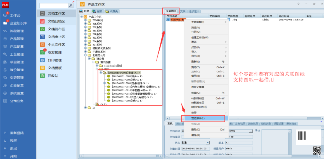 實現產品、零部件的生命周期管理,以及BOM的權限控制、版本控制及審簽功能