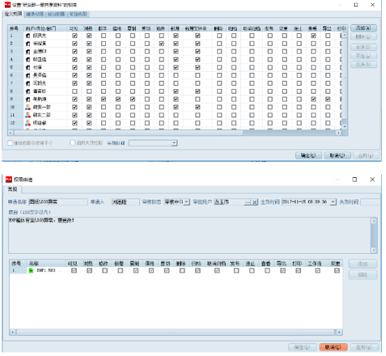 2、嚴(yán)密的全系體系管理,針對模塊、文件夾、文件均可分配權(quán)限,可定義權(quán)限包含21項之多,多角度多維度控制文件的安全;權(quán)限申請機制,主管可靈活配置員工權(quán)限需求,并且能夠有據(jù)可查。
