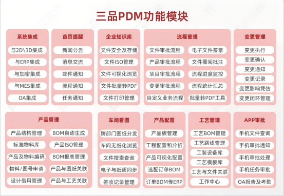 一個成熟的PDM系統通常由以下幾個關鍵功能模塊構成: